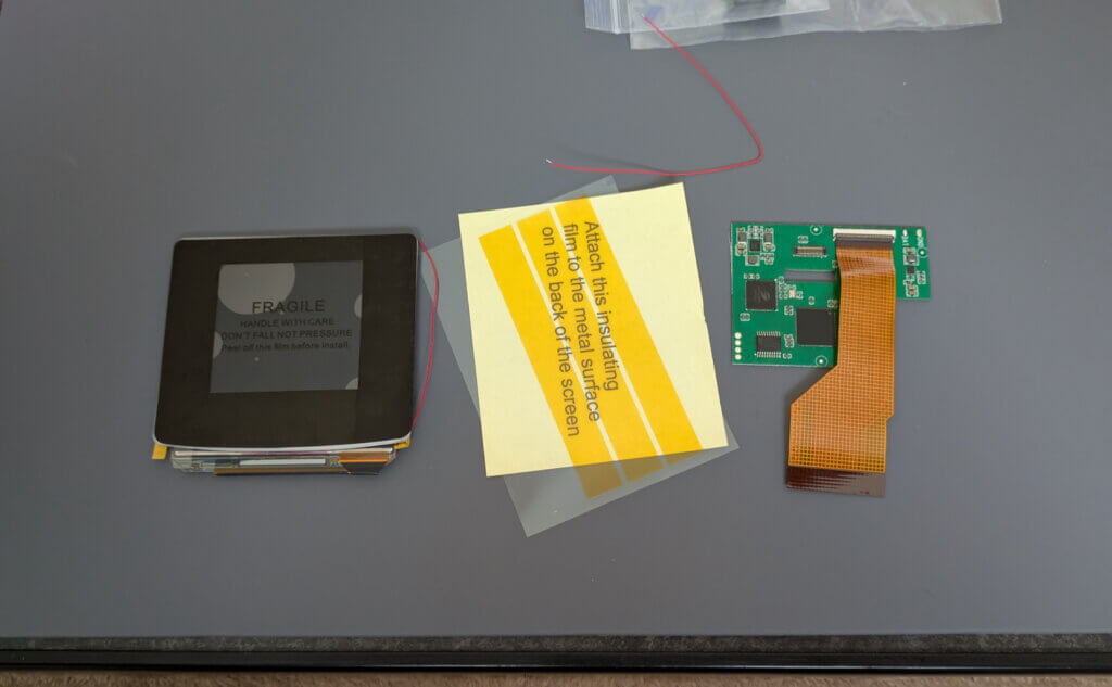 オリジナルはかなり年季が入っています。購入したシェルに付属のディスプレイパネルは今回使用しません。オリジナルの液晶ディスプレイを流用する際にはこちらを使用するのかな?