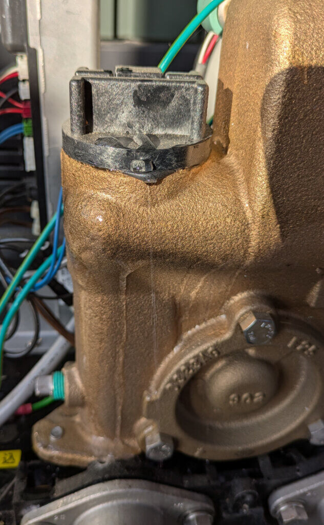 その後、雨水タンクと井戸ポンプをつなぐ塩ビ管が破裂し、井戸ポンプのパッキンが飛び出してこっちも水漏れ状態へ。